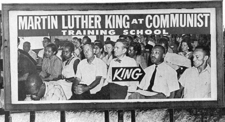 In 1957 a photograph was taken of an audience at the school that showed Martin Luther King sitting in the front row. Right next to him was a comrade named Abner Berry, the correspondent of the Communist Party's official newspaper, the Daily Worker. In the 1950s King's enemies plastered it all over the South to discredit King and his movement. It did discredit them—at least in those quarters that thought hanging out with Communists was discreditable.