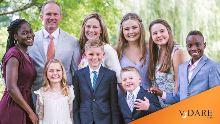 But there’s another issue. Amy Coney Barrett’s interracial adoptions do suggest that she may have no awareness of race realism—not impossible in her intellectual milieu. The plain fact is that interracial adoptions regularly don’t work out well, for example in the case of Colin Kaepernick and born-again Never Trumper David Frum’s family [The Prodigal Frum, The Nation, July 11, 2012]. How could she not be aware of this before inflicting it on her family?