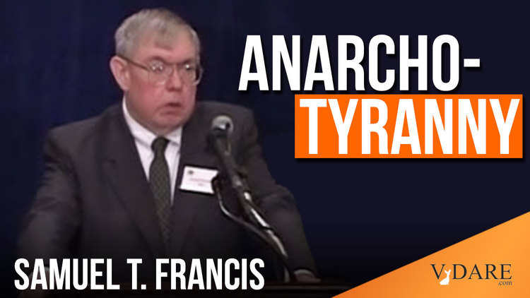 America Extinguished: Mass Immigration And The Disintegration Of American Culture, is now available from Americans For Immigration Control. Click here for Sam Francis' website. Click here to order his monograph, Ethnopolitics: Immigration, Race, and the American Political Future.