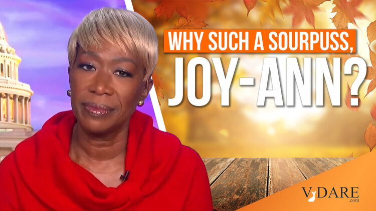 Why such a sourpuss, Joy-Ann? On the whole, life and MSNBC are treating you pretty well. And yet, over the last 10 years, you have complained pretty much nonstop about how badly you, and ”people who look like [you],” are treated in America.