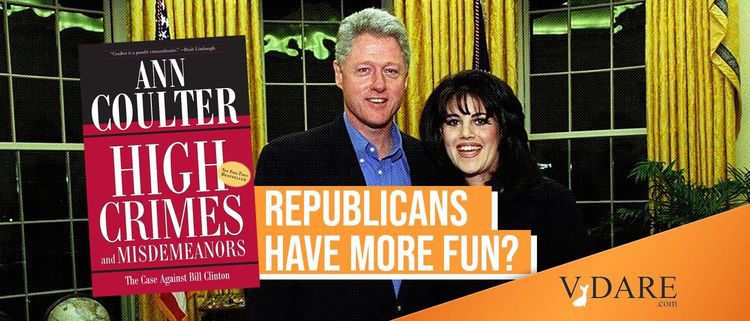 Liberals sneer that Clinton merely “lied about sex.” If it’s OK to “lie about sex,” then we can’t have laws about sex. No laws against sexual harassment, rape, child molestation, human trafficking, prostitution. (Oh sorry—I think I just listed the entire Democratic platform.)