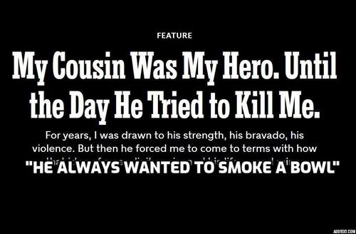 Times readers filled the "Comments" page with indignation at toxic masculinity, but one, a Toronto psychiatrist, wrote: "The article doesn't mention that his cousin's regular marijuana use could be one possible cause of his paranoid hallucinations."