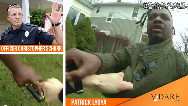 We must also stop calling the black thugs “victims.” The judge in the Kyle Rittenhouse trial did not permit prosecutors to call the criminals whom Rittenhouse shot and killed “victims” for good reason. “Victim” assumes the defendant—in Schurr’s case, possibly, a cop—is a murderer [Judge bars prosecutors from referring to men Kyle Rittenhouse shot as ‘victims,’ but will allow defense to use ‘looters,’ by Bruce Vielmetti, Milwaukee Journal Sentinel, October 26, 2022].
