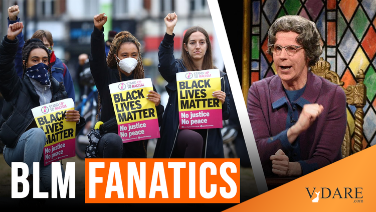 The result, argues Dutton, is that we would expect females who espoused Multiculturalism to undergo a kind of religious revival in the wake of the Covid-19 mortality salience, in a way that the “traditionally religious” would not. These Leftist females would have all of these religious impulses, but they would be expressed via “Multiculturalism” and, thus, via “Black Lives Matter.”