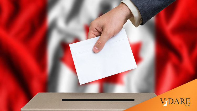 The Liberals have promised if re-elected to raise Canada's current rate of immigration from 250,000 a year to 300,000 or one per cent of the population. This would be the equivalent of the United States accepting 2.7 million legal immigrants a year, instead of 8-900,000. As in the United States, most immigrants come from outside Europe. (http://www.statcan.ca/Daily/English/971104/d971104.htm) Immigration is having a profound effect on life in Canada, which can be seen at a glance by walking down the streets of Toronto, Vancouver or any number of other urban centers. Almost half of all immigrants end up in the Toronto area (http://www.city.toronto.on.ca/ourcity/profile02.htm#1) with the result that the city itself, not that long ago overwhelmingly white, will sometime this year have a non-white majority.