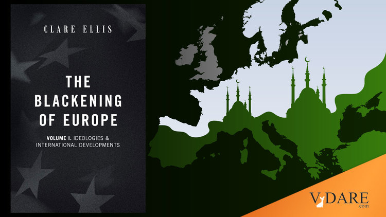 Clare Ellis is a Scottish-born Canadian researcher who earned her doctorate from the University of New Brunswick in 2017. Her thesis advisor was about-to-be Cancelled professor Ricardo Duchesne; the topic was multiculturalism and mass immigration in Europe. In a recent interview she describes the petty chicanery and delaying tactics she had to endure from Leftie administrators and academics before getting her work accepted [The Fate Of Europe: A Conversation With Clare Ellis, Postil Magazine, April 1, 2022]. Arktos Media is bringing out her research as a trilogy entitled The Blackening of Europe. The first volume, subtitled Ideologies and International Developments, came out two years ago; the second, subtitled Immigration, Islam, and the Migrant Crisis, appeared earlier this summer. The whole is amounting to a powerful description of the suicide—actually murder—of a civilization