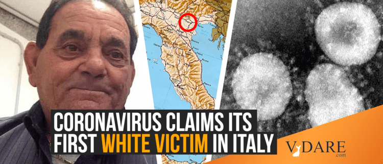 Well, it’s finally happened: An Italian, Adriano Trevisan, 78, a retired bricklayer, is the first acknowledged case of a white dying of Coronavirus [Italian passenger jet is 'held' after arriving in Mauritius as authorities 'demand all on board are quarantined or fly straight back' amid concerns over coronavirus which has killed SIX in the country... while UK insists 'threat to British public is low,' Daily Mail, February 23, 2020]. In all, a total of 12 deaths have been reported in Italy as of February 27th, (although it’s possible some were among the Chinese immigrants who now, amazingly, populate Italy’s fashion industry sweatshops) and panic is now world-wide [CDC 'took FOUR DAYS to test coronavirus patient with unknown origin' because she 'didn't fit infection criteria' - as dozens of staff at the California hospital are ordered to isolate and experts fear the disease could explode quickly like it did in Italy, Daily Mail, February 27, 2020]. But there are still ethnic as well as racial patterns that mean most people in the U.S., and Europe probably don’t have to worry