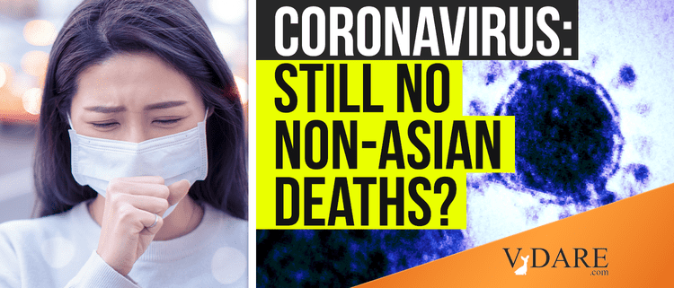 The racial dimension to the Corona virus has fascinated me since the outbreak began. Despite some ethnic Europeans having caught it, including white Americans trapped on a quarantined cruise ship off Japan which has turned into a floating Corona epidemic [Indiana woman is latest Diamond Princess cruise evacuee to test positive for coronavirus, by Jackie Salo, New York Post, February 19, 2020], it’s still true although as of today (February 20) no white people have died of the virus as far as we know. Two people in Iran have just died of Corona [Coronavirus: Iran reports two suspected fatal cases at Qom hospital, BBC News, February 19, 2020], but this doesn’t necessarily undermine the argument that Corona is primarily—but, of course, not necessarily exclusively—an East Asian disease. Let me elucidate.