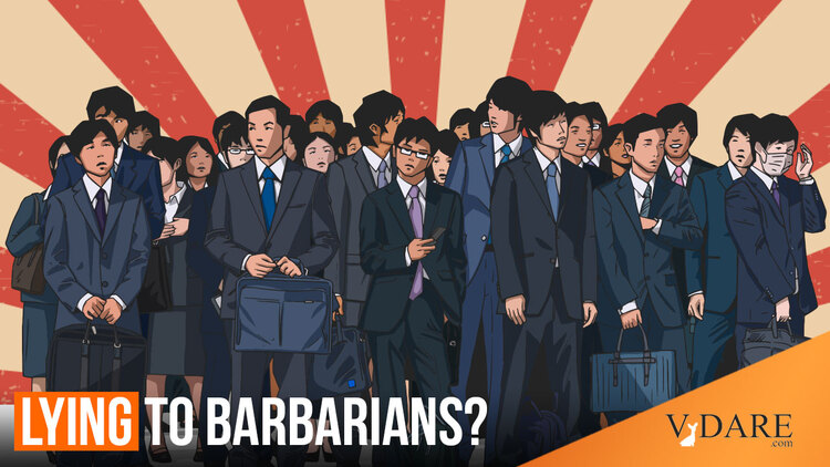 Patriots understandably worry that Japan will submit to Globohomo and open its borders. My prediction: While the still ethnically and culturally homogenous nation pays public lip service to refugees, diversity, or any other leftist cause du jour, it will use rhetorical jiu-jitsu to avoid actually doing anything. Lying to barbarians is something at which the Japanese excel [Japan Opens To Diversity, Mass Immigration, Or Does It?, Federale, February 8, 2021].