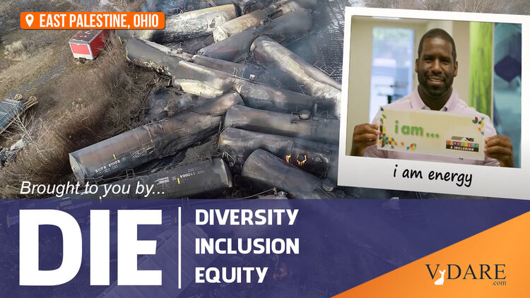 But then again, DIE is a major preoccupation at Norfolk Southern, as its website shows [Norfolk Southern Spent Years Pushing Woke DEI Initiatives Prior To East Palestine Train Derailment, by Henry Rodger, Daily Caller, March 20, 2023]. “A diverse and inclusive workplace is key to Norfolk Southern’s success as a transportation leader,” the company says.