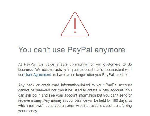 PayPal has still not, despite our repeated requests, explained why it cut us off. Our Notice of Dispute documents our interactions with various puzzled PayPal lower-level employees who had obviously believed they worked for a politically impartial entity in a free country.