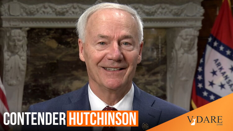 On VDARE.com’s signature issues, immigration and the National Question, the former Arkansas governor is useless. Of course, he speaks, blandly, about securing the border [Asa Hutchinson to Newsmax: We Need Border Security Bill, by Nick Koutsobinas, Newsmax, February 8, 2023]. But he actually supports mass immigration.