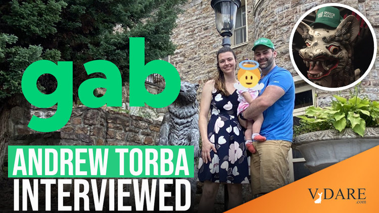 VDARE.com Editor Peter Brimelow writes: Since we posted this interview with Gab’s Andrew Torba on June 24, 2020, the sitting President of the United States has been Cancelled by the Tech Totalitarians and they’ve inflicted more unpleasant things on VDARE.com. But Gab is surging, although the usual suspects have reportedly prevented Trump from moving to it, thus leaving him without a social media voice [Kushner Halts Trump Move to New Social Media After Twitter Ban, by Jennifer Jacobs, Bloomberg News, January 13, 2021]. The Network Solutions deplatforming threat to our domain registration was averted, but the black lady lawyer who inspired it is reportedly beingappointed by Biden to the US DOJ “Civil Rights” enforcement arm.