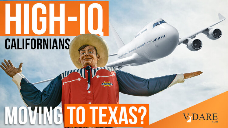 In fact my recently published study, coauthored with David Quinn, proves quite the opposite [Is the Ongoing Migration from California to Texas a Migration of Cognitive Capital?, Mankind Quarterly, September 1, 2023]. Quinn and I demonstrate that cognitive capital is moving from California to Texas. Intelligent Californians, to use the American parlance, are “getting the hell out of there.” And strongly conservative Texas is definitely one of their major destinations.