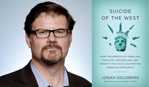 I wrote a lot in the early aughts about Jonah Goldberg’s apotheosis at National Review in the wake of William F. Buckley’s purge of immigration patriots like John O’Sullivan and VDARE.com Editor Peter Brimelow because I regarded Goldberg as a symbol and a symptom of the intellectual and moral degeneration of a magazine I once loved, and of the movement it purported to lead. Indeed, I gather that my habit of referring to the post-purge NR as “The Goldberg Review” caused Norman Podhoretz to ostracize Brimelow, once his close ally in Manhattan conservative circles, an unimaginable disaster for which I am deeply sorry. Subsequently, Goldberg apparently lost his editorship of NRO for some trivial reason of girly-boy intrigue. But Conservatism, Inc-ers never die. For his newest venture into deep thought, Goldberg has crassly stolen the title of James Burnham’s great work, Suicide of the West, published in 1964 at the height of the Cold War.