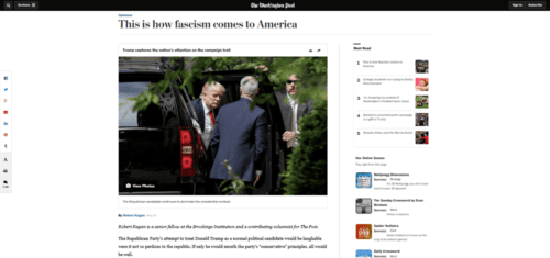 Robert Kagan [Email him] contributed an op-ed to a welcoming Washington Post saying the Trump campaign is "how fascism comes to America."
