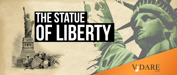 But where did the sentimental poppycock tying the Statue of Liberty with unrestricted immigration come from? Young children who couldn't tell you what happened in 1776 or when the War of 1812 happened, hear The New Colossus read so often in civics class that there's some danger of them memorizing it, in violation of every tenet of progressive educational theory.