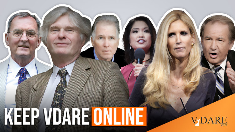 VDARE.com is a non-profit publishing information to educate the public on the negative effects of mass immigration, and to serve as the voice of the Historic American Nation. This work is not easy and it is not cheap. Please consider becoming a donor today, to fuel this work.