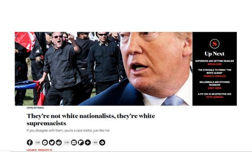 Why is it so hard for Leftists to get the least little thing right about anyone who disagrees with them? On September 5, SALON.com published a hair-raisingly ignorant article about “white supremacists” by a professional writer who presumably also knows how to read. Lucian K. Truscott IV [Tweet him] is a West Point graduate and best-selling novelist whose books have been made into movies. And yet the article he published, They’re Not White Nationalists, They’re White Supremacists, is a childish attempt to smear the entire Republican party (and me) as “white supremacists.”