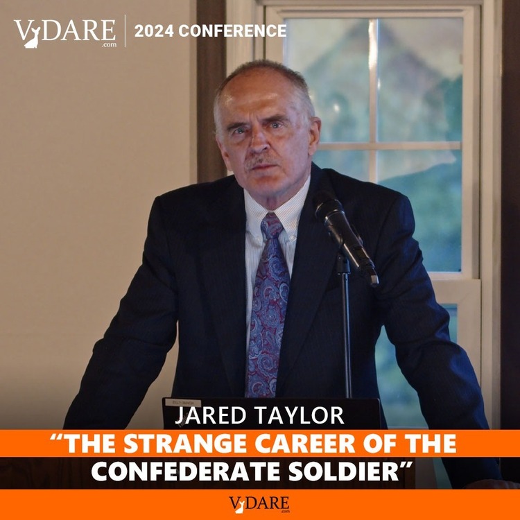 James Fulford writes: Jared Taylor, editor of American Renaissance, spoke at the VDARE 2024 Conference on Confederate Memorial Day—still an official holiday in some states. Taylor wrote here on VDARE.com in 2011 “My great-great-grandfather, William Boggs, was an engineer who helped prepare the gun emplacements at Fort Moultrie, which delivered the heaviest fire [on Fort Sumter]. All my ancestors on both sides of my family were Confederates. There is not a single Yankee in my family tree, so my lineage is about as Southern as it could be.”