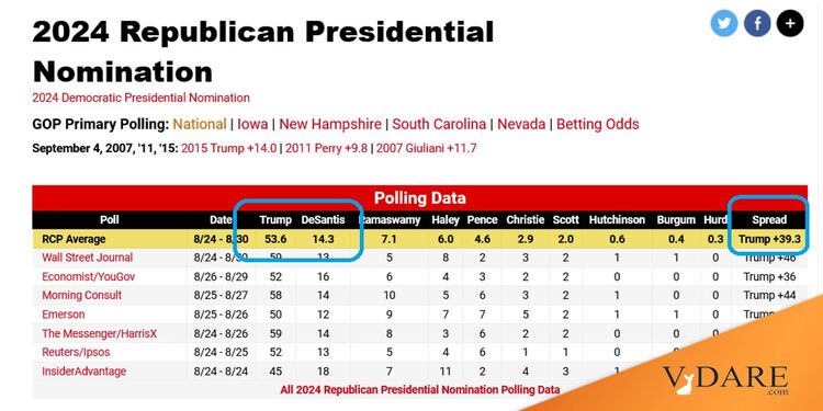 While he still claims the second spot in GOP primary polls, the distance between Florida Governor Ron DeSantis and frontrunner Donald Trump keeps expanding. Republicans won’t vote in their primaries for some time, but DeSantis’ problems are widely acknowledged [Ron DeSantis’ Campaign Is Flailing, by Cameron Joseph, Politico, August 18, 2023]. Why? What could DeSantis have done differently? My answer: He should have hammered the National Question and positioned himself for 2028.
