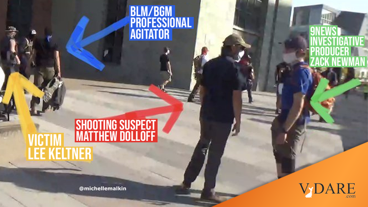 Dolloff has been detained under investigation for first-degree murder. Newman was held, and then released. Here's where it gets weirder and darker. 9News initially identified Dolloff as an armed private security guard contracted through Pinkerton security services. Turns out that he was unlicensed and operating as a security guard illegally in Denver. Pinkerton denied Dolloff was an employee and refuses to name the company, if one exists, that subcontracted Dolloff out. Newman did not respond to my questions about the exact nature of his relationship with Dolloff or how many previous times Dolloff had been his "security guard" at left-wing protests and riots over the past year.
