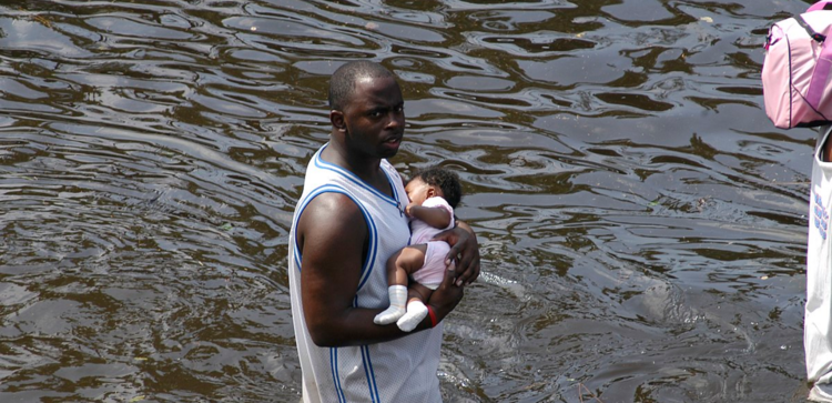 While a sizable majority of the 365,000 African-Americans in New Orleans had the assets, prudence, and/or friends or family to get themselves out of town before the hurricane, something like 100,000 were left behind.