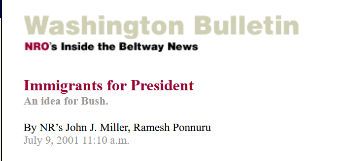 John J. Miller and Ramesh Ponnuru, National Review's most enthusiastic immigration enthusiasts, came up with a suggestion for Bush to make when he visited Ellis Island this week.