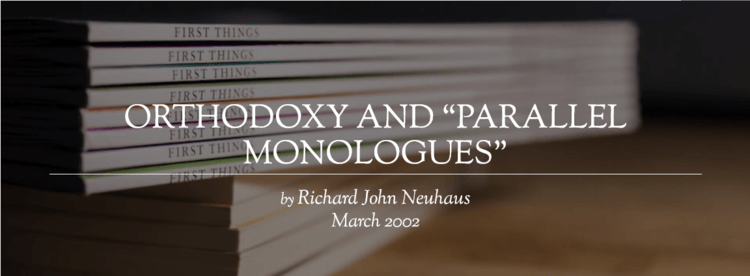 But after all, Neuhaus' great issue is the place of religion in the American public square. (Click here for his book in the subject.)