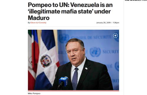 Friday, Secretary of State Mike Pompeo told the U.N. Security Council: "Now it is time for every other nation to pick a side. ... Either you stand with the forces of freedom, or you're in league with Maduro and his mayhem."