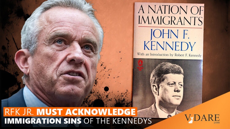From VDARE.com’s point of view, Kennedy has actually said sensible things on immigration. Kennedy advocates a policy he calls “Tall Fences, Wide Gates,” a wiggle room position that falls short of a moratorium, but is vastly superior to that of any other Democrat in the country. On Boxing Day, he posted a video of himself standing at what is left of the Southern Border fence declaring: “I will make the border impermeable to illegal immigration.” However, if he is going to call for anything resembling an America First immigration policy, then he must acknowledge the Kennedy family’s decades long contribution to the nation-breaking crisis that now afflicts us.