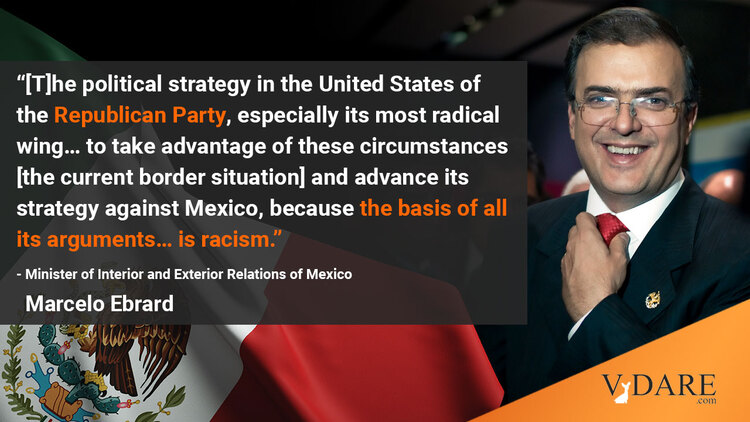 The cunning Ebrard, a possible presidential candidate, attacked the “most radical wing” of the Republican party, by which he meant those who want a secure border. Anyone in favor of that crazy idea is, well, you know what he is: He’s a racist: