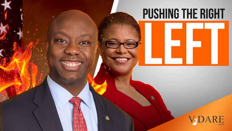 How determined is Scott to move the GOP left on race and “diversity”? In 2018, he deep-sixed two solid Trump judicial appointees to make the point. Scott kneecapped Ryan Bounds, who was headed to the Ninth Circuit Court, over an anti-multiculturalism op-ed the nominee wrote in college. It read like something from National Review, but Nanny Scott declared it racist. He also torpedoed Thomas Farr because he worked for conservative hero Jesse Helms’s campaigns in 1984 and 1990. Those campaigns, Scott declared, relied on “racial intimidation.” “We are not doing a very good job of avoiding the obvious potholes on race in America, and we ought to be more sensitive when it comes to those issues,” he said [Sen. Tim Scott tells fellow Republicans: Do better on judicial nominees, by Sean Sullivan, the Washington Post, December 8, 2018].
