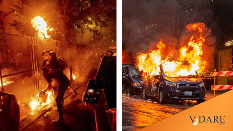 Violence is absolutely endemic in minority America, most of it directed against minorities. Even riots aren’t uncommon—here’s a completely forgotten example in Cincinnati in 2001. Violence only becomes news, as Steve Sailer has documented, (see here and here and here) when it serves the purposes of the increasingly Cultural Marxist Democratic Party and its Main Stream Media auxiliary. Of course, black on white violence, although quantitatively far greater than white on black violence, does not serve that purpose, so it suppressed with amazing chutzpah.