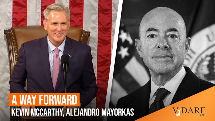 Washington Watcher II made an excellent point when he said that now-Speaker McCarthy has given immigration patriots all they can reasonably want, including a promise of No Amnesty. Speaker McCarthy is no profile in courage but that is good, because he will respond to pressure. He isn’t ideologically committed to replacing the American people in the name of the GDP (like Paul Ryan) and he lacks the late and unlamented John McCain’s bizarre racial fantasies. Speaker McCarthy also has identified the Biden Administration’s Achilles heel in the DHS Secretary, and has is forcibly demanding his resignation, threatening impeachment otherwise.