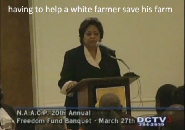 Oh, I don't mean necessarily that she'd deny aid to white farmers—I doubt if she'd deny aid to any farmers whatsoever. That's the problem with "community organizers" and Federal money.