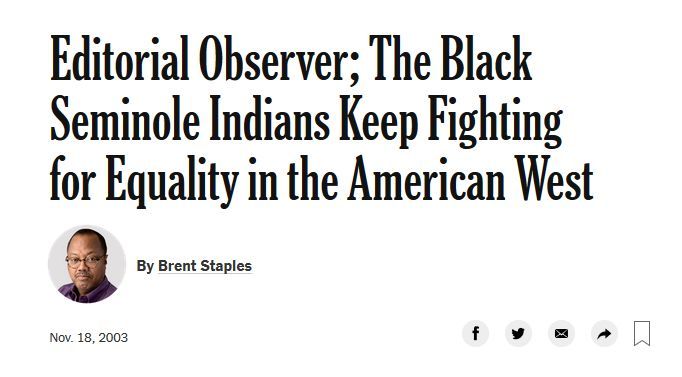 The odd thing about this article is its title: "The Black Seminole Indians Keep Fighting for Equality in the American West."