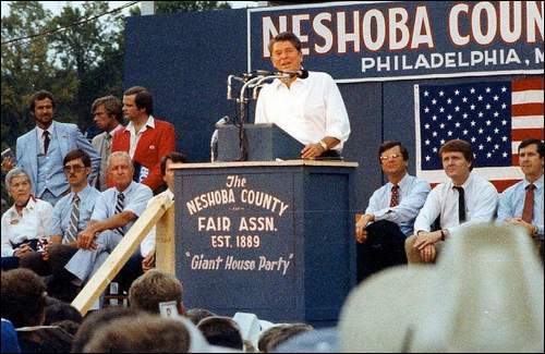 Then there was Ronald Reagan's speech at the Neshoba County Fair in August, 1980. You will hear, over and over again, that Reagan went to Philadelphia, Mississippi, (partly at the behest of then-Congressman Trent Lott, another guy who said something that turned out to be "racist" after liberals and neoconservatives had interpreted it )and spoke about "States Rights" near the site of the murders of three civil rights workers, who had been murdered sixteen years earlier. In so doing, he was supposed to be sending a message to White Supremacists.