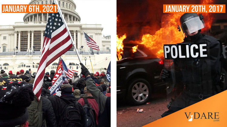 Recently, in an introduction to VDARE.com editor Peter Brimelow's "It Will Come To Blood" Four Years Later—The Left's Trump Inauguration Day Tantrum Was Just The Beginning, I wrote that we've been hearing a lot about "right-wing violence" at the recent Capitol protests from pundits who seem to have forgotten that the Communists who rioted against Trump rallies before he was elected also turned up on his first day in office to riot against his election.