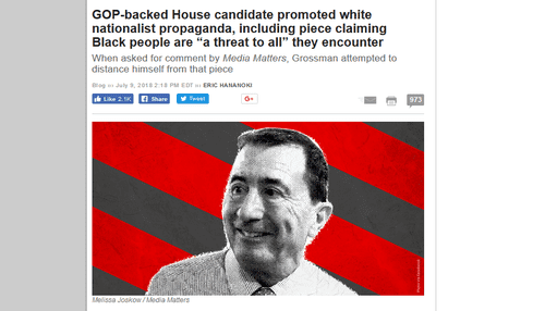 GOP Congressional Nominee Seth Grossman Shared White Nationalist Articles, By Aiden Pink, July 9, 2018. Emphasis added.