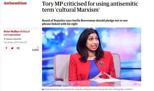 [Tory MP criticised for using antisemitic term “cultural Marxism”, By Peter Walker, March 26, 2019]