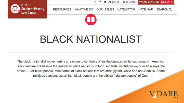 The BLMania has made many companies and organizations "go Woke," and commit to "furthering racial equity" in hiring, by giving away millions to non-white pressure groups, or shaming themselves for insufficient "anti-racism." Needless to say—especially under the embarrassing circumstances—this trend reached the SPLC. Recently, it announced it would retire its "Black Separatist" category of "hate groups" because even the most anti-white black separatism isn't "hate;" it’s "valid anger against very real historical and systemic oppression." The SPLC explained that "groups formerly designated as Black Separatist will be characterized by antisemitism, anti-LGBTQ, male supremacy and whatever additional ideological categories most accurately describe their offending beliefs."