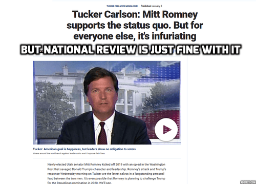 Needless to say, this opinion was met with frothing anger by several Conservatism Inc. writers, a crowd that seems to believe the free market a holy thing that must not suffer blasphemy. They were upset that anyone would dare suggest that the state could act to rectify social ills, arguing that this was rank demagogy and antithetical to conservatism. National Review published several op-eds condemning Tucker’s monologue—a sure sign of Respectable Right displeasure.