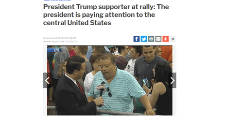 Above,  a Trump supporter from Western Kentucky at the August 29 Evansville IN rally: “The President paying attention to the central United States.“
