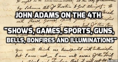 But if you're a normal American, enjoy the "Shews, Games, Sports, Guns, Bells, Bonfires and Illuminations" plus fireworks and hot dogs.