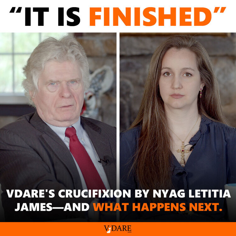 Earlier: “IT IS FINISHED”—NYAG Letitia James Crucifies VDARE.com