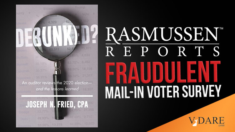 The Heartland Institute has put out a startling press release: Heartland/Rasmussen Poll: One-in-Five Mail-In Voters Admit to Committing at Least One Kind of Voter Fraud During 2020 Election [by Justin Haskins, Christopher Talgo, Donald Kendal, Jack McPherrin, James Taylor, Jim Lakely; December 13, 2023].