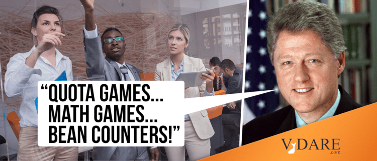 Above all, the President must know the issue is death for the Democrats: His own pollster, Stanley Greenberg, conducted the post-1984 focus group interviews that found opposition of white working-class voters. (The party promptly suppressed Greenberg's report and now uses only happy-talk such as "looking like America." But a quota by any other name is still a quota.)