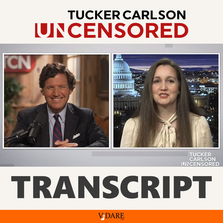 VDARE.com Editor Peter Brimelow: Lydia’s interview with Tucker Carlson about NYAG Letitiia James's suppression of VDARE.com was posted a week ago. The X/Twitter excerpt is seven minutes long; the full version (which many people don’t seem to realize exists), is behind the TuckerCarlson.com paywall and is 37 minutes long. We now post here, with permission, the full transcript, lightly edited.