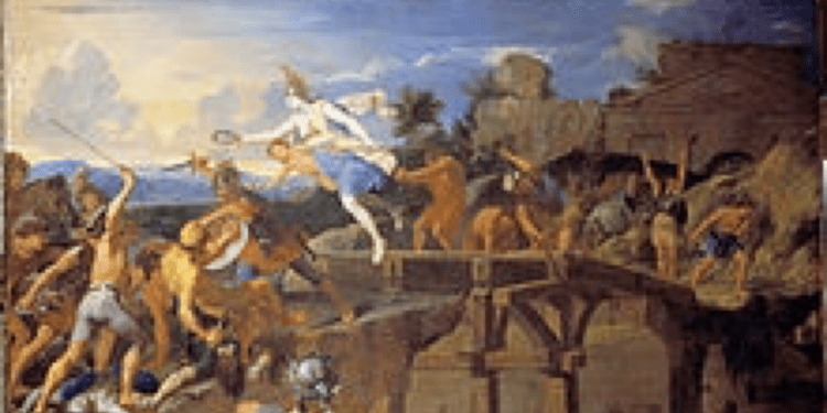 Note also that Macaulay has Horatio fight for “ashes” and “temples”—that is, not in the hope of saving any living family members, or in the service of any gods in whom he has confident faith. The implication: he could have no family members and no hope of divine providence—but his death in battle would still have symbolic resonance.
